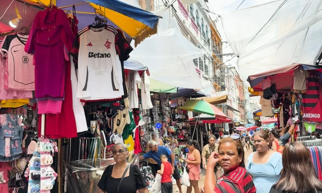 Comércio aquecido no centro de Manaus. Reprodução TV Norte Amazonas