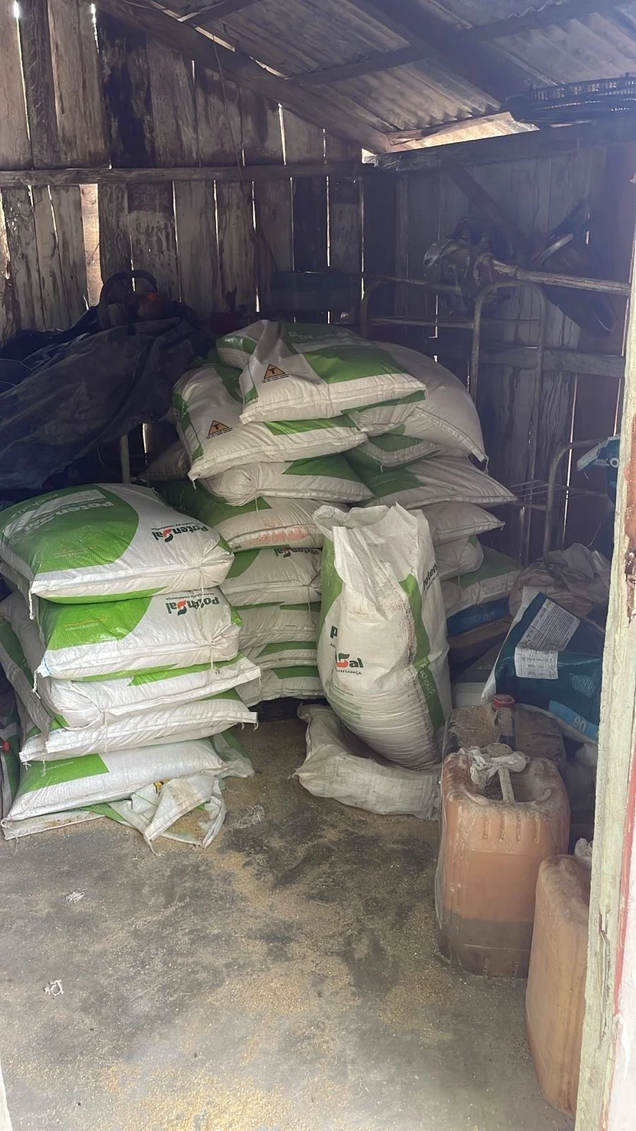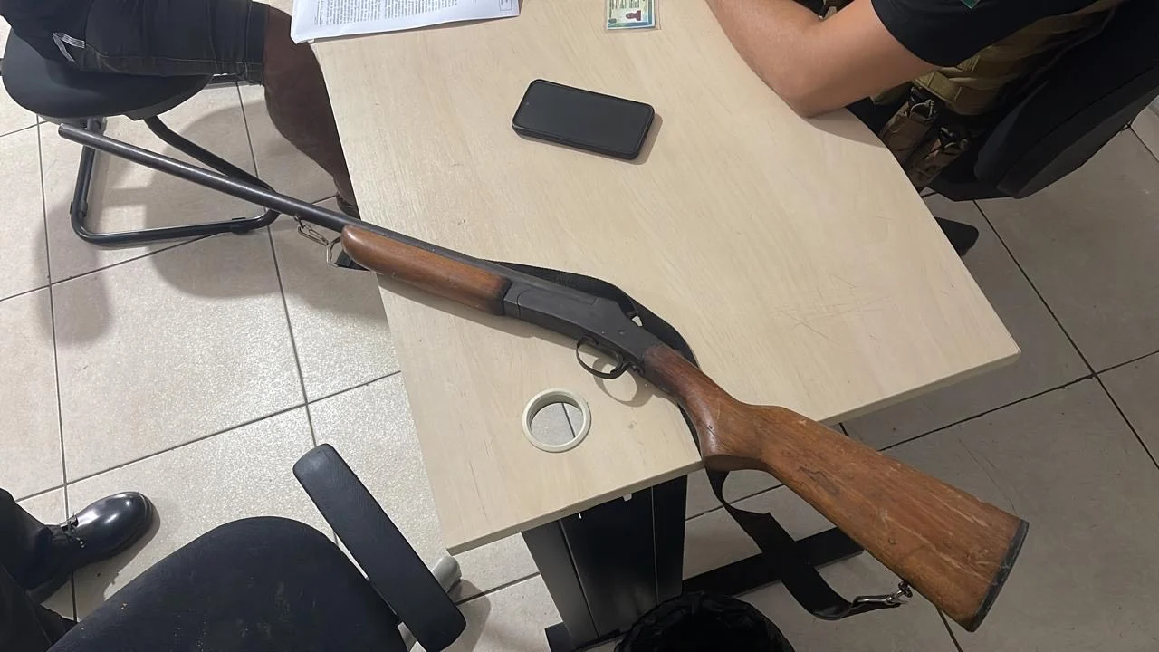 Na Vicinal 05, a equipe encontrou D.E.M.S. com uma espingarda calibre 20 sob a cama e sacas de sal e ração reconhecidas como furtadas.