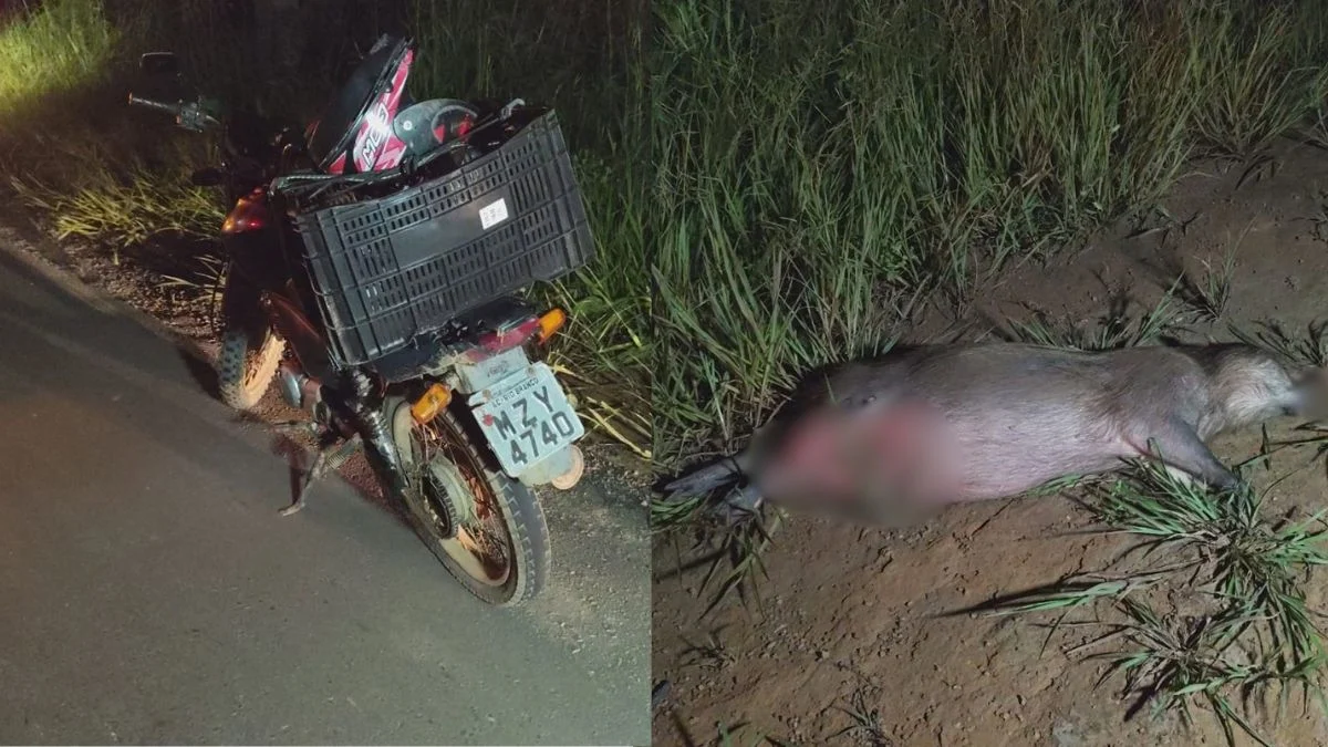 Sem conseguir desviar, houve o choque, que resultou na perda de controle da motocicleta e na queda violenta do condutor sobre o asfalto. A capivara não resistiu ao impacto e morreu ainda no local.