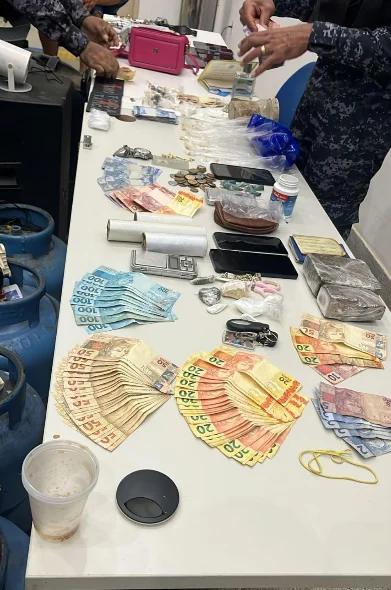 Nas buscas, os militares apreenderam porções de crack e cocaína prontas para comercialização, balanças de precisão, dinheiro em espécie, embalagens para fracionamento e um caderno com anotações detalhadas do suposto controle de vendas, incluindo valores e nomes de compradores. Também foram recolhidos celulares, equipamentos eletrônicos e objetos com indícios de origem ilícita. Ao todo, sete pessoas foram abordadas no local. Segundo a polícia, alguns dos suspeitos afirmaram integrar uma facção criminosa, e pichações com siglas do grupo foram identificadas nas paredes do imóvel.