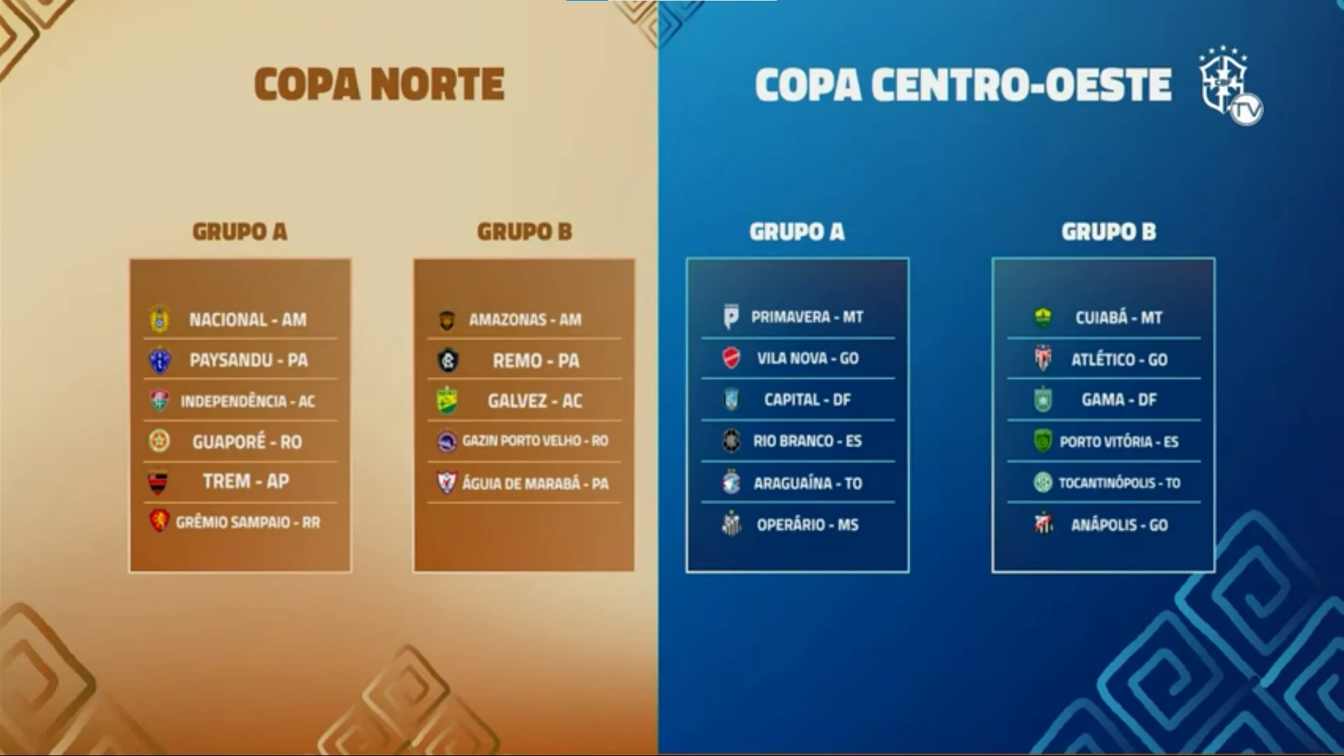 A Confederação Brasileira de Futebol (CBF) realizou na terça-feira (3), no Rio de Janeiro, o sorteio que definiu os grupos da Copa Verde de 2026. A competição começa no dia 25 de março e contará com um novo formato, dividido em dois blocos regionais: Copa Norte e Copa Centro-Oeste.