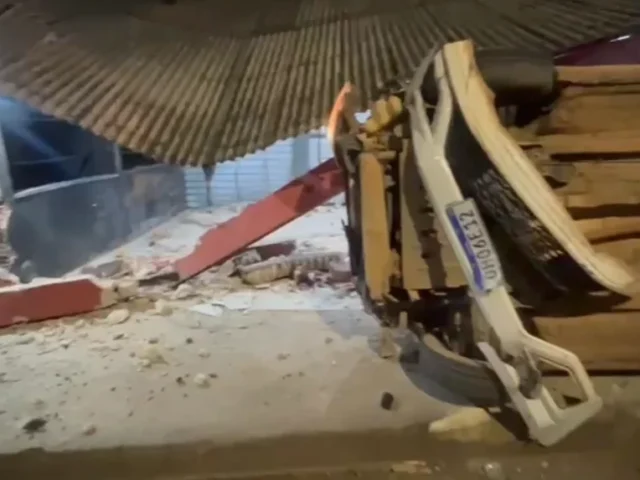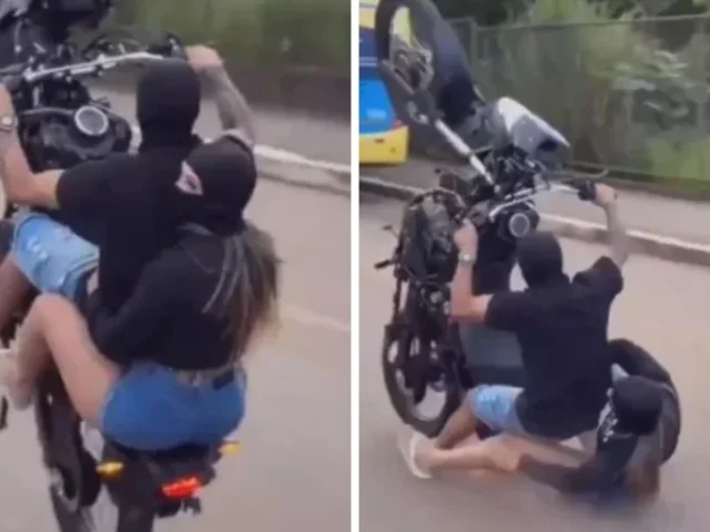 Imagens de câmera de segurança registraram o momento em que moto atinge a traseira de um carro; apesar da força do impacto, vítima não sofreu ferimentos graves.